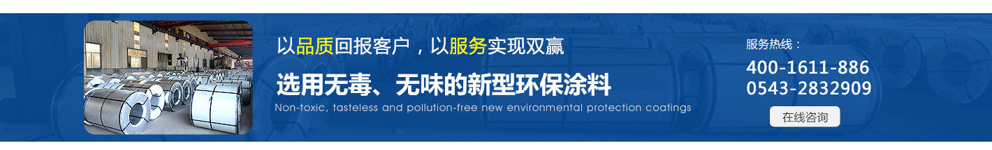 公司设备配置精良,技术力量优良,彩涂生产采用了国内近几年来的彩涂卷生产工艺,引进了国内的生产装备和各种精密的检测仪器,新型环保涂料,产品具有抗腐性、耐候性强,色泽亮丽,可长期保持彩色原貌,不褪色、不脱漆、使用寿命长等特点。公司经过几年的努力发展,不断引进一系列配套的生产设备,质量、工艺及设计均达到高水平。产品价格合理、款式多样、规格齐全、实用性强,多年以来一直得到了国内外市场客户的好评、支持及信赖。